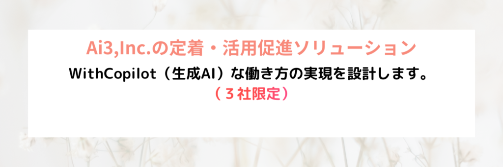 3社限定で、Copilotを導入した後の定着・活用率の上昇などの解決策を提案しています。「ただ導入しただけ」にならない世界が手に入ります。